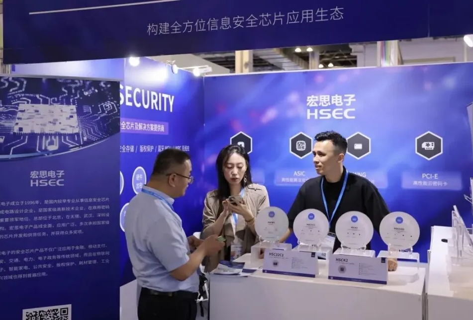 此次第三届商用密码展不仅是行业成果展示的平台,更是推动密码技术创新与应用的重要契机。作为国内较早专业从事信息安全芯片研制、在商用密码领域具有领军地位的芯片设计企业,宏思电子在保持信息安全领域的技术、产品业务核心优势的同时,把握“万物互联”的市场机遇,大力拓展在智能物联网认证芯片、版权保护、耗材管理、智能交通等行业所使用的各类安全芯片产品及服务,不断拓展业务边界,为商用密码技术的广泛应用和创新发展贡献力量。