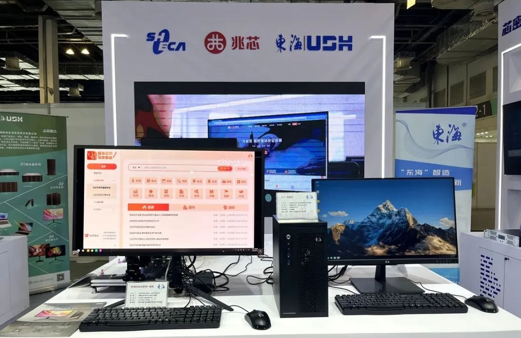 大会现场,兆芯还与联和东海共同展示了多款基于兆芯CPU的信创AI终端产品,包括AI台式机、笔记本、工作站、服务器等,凭借高效、流畅的本地化AI大模型应用,可为行业用户带来安全可靠的AI办公体验,助力提升工作效率和创新能力。