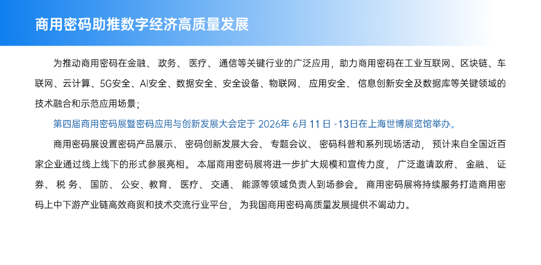 欢迎来到2026第四届商用密码展暨密码应用与创新发展大会